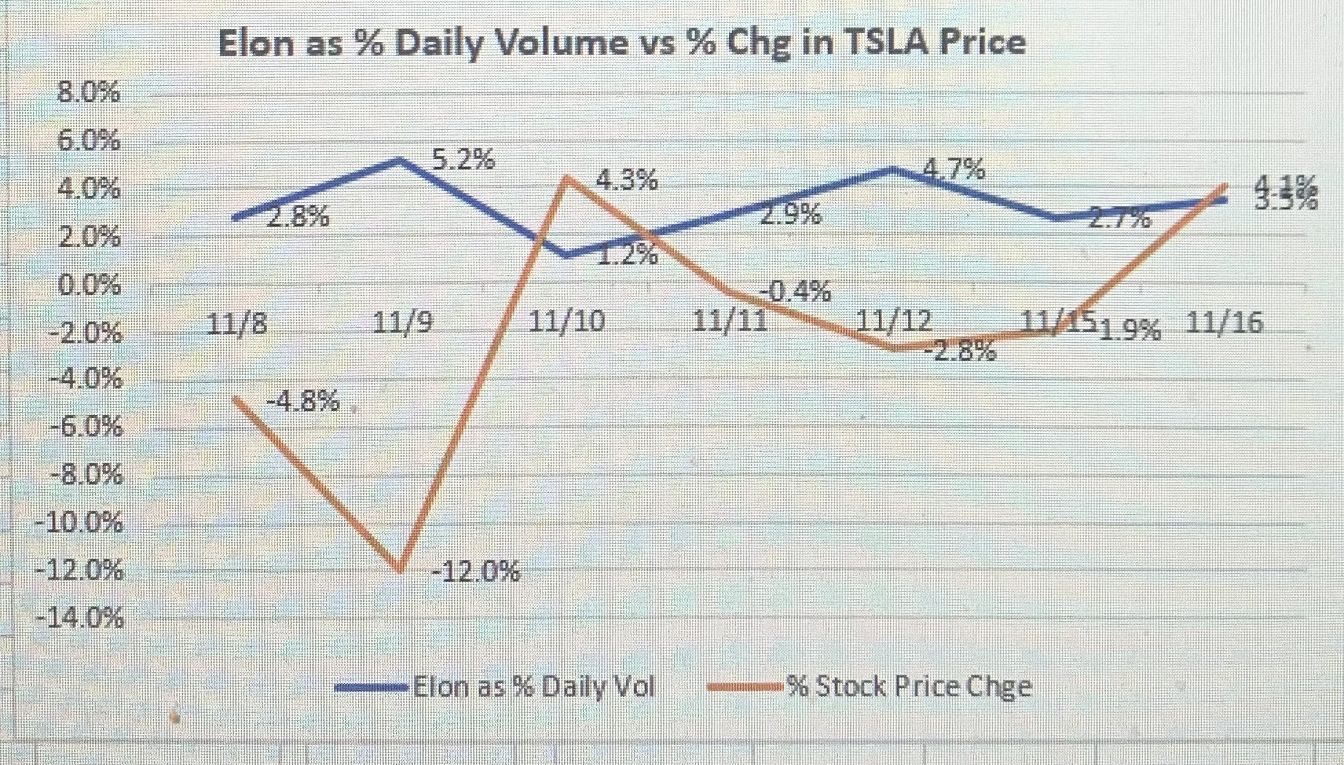 Tesla stock had dropped a maximum of about 15 from the time the Twitter deal was announced on Monday through Thursday afternoon losing over 100 billion in value.